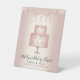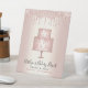 Present your best self to your clients, with this elegant, sophisticated, simple, and modern custom business name pedestal sign. A sparkly, rose gold 2 layer cake, script handwritten typography and glitter drips overlay a faux metallic rose gold ombre background. Personalize with your full name/business and other contact info. Available in 4 sizes: 4”x6”, 6”x8”, 8”x10”, and 10”x12”. Makes a chic, and stylish statement that will smartly display your business in a professional manner.
