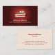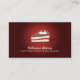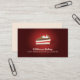 Customizable business card template for bakery, candy store, sweets and desserts making with vector illustration / logo of chocolate cherry cake slice on red and cream.