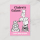 Cake maker business card. Baking cakes. Business card for the cake maker in a cake making and cake baking business. Illustration is a fun cartoon showing a cake maker icing the top of a large cake, while standing on a stepladder.