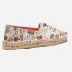 These shoes are amazing, well constructed, vivid color durable fabrics, can wear comfortably without socks…and pick your liner color. I ordered several and wore all Summer into Fall. A GREAT choice and hundreds of fabrics to choose from! Thanks so much to the designers…a real winner!! Order one size up to wear with socks. Usual size is snug at first but does stretch after several earrings. .