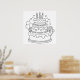 Cake Coloring Poster, Kids Birthday Activity Coloring Poster in black and white, This poster can be used for birthday party activity, games and craft coloring