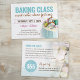 A bright and attractive postcard for instructors running a baking or cake decorating class or course. Postcard design includes light background touches of robin blue and purple, images of beautiful cakes and the ability to edit the title, description, date, time, price, location, and registration information.