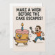 A hilarious cartoon-style illustration featuring a running birthday cake with a candle on top, being chased by a determined boy holding a fork. The caption “Make a wish before the cake escapes!” adds a playful and cheeky twist, perfect for birthday gifts, party invitations, or humorous greeting cards. This design blends humor and celebration in a fun and quirky way.