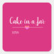 Modern cake in a jar sticker with a white script font on a pink background embellished by a cute heart. Customize text.