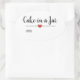 Modern oval "cake in a jar" sticker with a black script font on a blush pink background embellished by a cute red heart. Customize text.