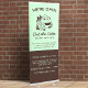 Cake Logo Bakery Business Reopening Retractable Banner. This design features an elegant cake logo on a mint green background. Perfect for bakeries, cake and pastry shops, cafes, caterers, restaurants or any food service related business reopening amid the covid 19 coronavirus crisis.