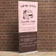 Cake Logo Bakery Business Reopening Retractable Banner. This design features an elegant cake logo on a pink background. Perfect for bakeries, cake and pastry shops, cafes, caterers, restaurants or any food service related business reopening amid the covid 19 coronavirus crisis.