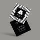 Your initial or business initial is set in a fun cursive script on a silhouetted cake shape for the perfect logo. Set on a bold, modern black and white stripe pattern for a fun aesthetic. Great for bakeries, catering companies, dessert chefs and more. © 1201AM CREATIVE