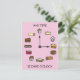 A clock face made up of different types of cakes and buns, against a pastel pink background. The accompanying text says 'Any time is cake o'clock'.