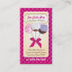 Cake pops are the latest craze in sweet things, so it's important that a business dealing in baked goods and other yummy things stand out from the crowd. This business card features of trio of cake pops tied with a pink ribbon. The pink is picked up from the bright polka dot background. The business name and description stand out in its own frame while the address and main contact information print below. The reverse reveals two more cake pops to accent the rest of the business information and a special message about the business. Available with matching products.
