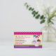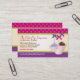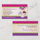 Cake pops are the latest fun treat, so it's important that a business dealing in baked goods and other delicious things stand out from the crowd. This business card features three yummy-looking cake pops tied with ribbons. The background is a bright polka-dotted fuchsia and a diamond patterned purple. The business name, description, address and main phone contact stand out in its own frame with a web address printing below. The reverse reveals the same background with the rest of the business information and tagline or a special message about the business. Available with matching products.