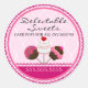 © 2011 Socialite Designs. Whimsical cake pops bakery stickers with a shaped cake pops and lace. Great to use as cake box seals. Matching bakery products with this design are available in my store. Font style, color and alignment can be changed by pressing "Customize" button.