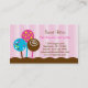 Identify your business in style with this cute, colorful and eye-catching bakery business card. Great for a bakery that specializes in cake pops and other sweet treats. Features three cake pops with different designs on a stripes background. Add your information and make it your own.