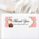 © 2013 Socialite Designs. Whimsical chocolate cake pop with pink bow design thank you small labels. The background has a pink polka-dot pattern. Perfect to attach to wrapped cake pops.