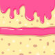 Lovely hand-drawn cartoon style slice of vanilla cake with chocolate, purple and pink icing and customizable text for your kids' delicious birthday party!