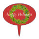 Green holly wreath with red berries. Background color (defaults to red) may be Customized. White text reads "Happy Holidays"