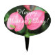 It's amazing to consider that an average of 12 million anthurium stems are shipped annually from Hawaii. That's a million a month; roughly 250,000 per week. These open, heart-shaped flowers of tropical origin are also known as "flamingo flowers", "boy flowers", "painted tongues" and "painter's palettes" and symbolize hospitality. These exotic blooms are also thought to bring luck and protect against evil. Some "old wives' tales" say that when the flower closes, it means rain is coming. Mythology, however, tells us that the petals close at sunset in order to provide sleeping quarters for magical fairies. These fairies, in turn, enchant the flowers which is why they are so long lasting. Generally speaking, anthuriums symbolize hospitality and mean "intense attraction from the heart". The pink anthurium, specifically, stands for grace and youthfulness. These dramatic blooms add a lovely element to this cake pick. The text, "Happy Mother's Day!" can be modified to suit your special occasion.