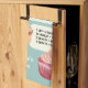 This cute kitchen towel is handy to have around. It features basic baking and cooking measurement conversions with illustrations of yummy cakes and treats set against a light blue background. This towel is ready to be personalized with a name or other message in cream colored lettering at the bottom.