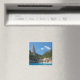 Souvenir photo magnet of the big climbing rock at Cala Goloritze beach in the Gulf of Orosei on the island Sardinia in the Mediterranean Sea, Italy.