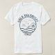 Cala Goloritze Italy word design on the front of t shirt in blue color with ocean view mountain design line drawing.