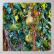 Calabash Tree Gourds In Autumn Acrylic Art Gourds is a multicolored painting of a vine grown for its fruit, harvested young as fruit and or harvested dried, and used as storage or decoration. Turquoise, blue and green dominate this artwork.