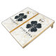Calacatta Gold Marble Four Leaf Clover with Name Cornhole Set brings together timeless elegance and the playful spirit of celebration, creating a memorable focal point for gatherings both festive and relaxed. The graceful marble inspired backdrop paired with the beloved symbol of the four leaf clover evokes a sense of charm, luck, and joyful anticipation, making it especially fitting for weddings, parties, and meaningful milestones. Personalized with a name, the set carries a quiet sense of individuality that transforms a classic lawn game into a keepsake of shared moments and laughter. Friends and family gather, the rhythm of friendly competition unfolds, and each toss becomes part of an atmosphere filled with warmth, good fortune, and the simple delight of time spent together.