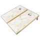 Elevate your outdoor entertainment with the Calacatta Gold Marble Stone Cornhole Set, featuring a stunning blend of elegance and style for your lawn games. The white and gold crystals stone design offers a luxurious and eye-catching aesthetic that enhances any outdoor space with its modern appeal. Perfect for casual play or competitive tournaments, this cornhole set ensures hours of stylish enjoyment. Whether for family gatherings, summer parties, or friendly competitions, this set promises to elevate your outdoor experience and create lasting memories with its distinctive design.