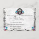 Calaveras Sugar Skull & Flourishes Reception Card. Features a Muerte Dia De los Muertos Sugar Skull, brightly colored flowers surrounded by elegant flourishes. Background is a grey/white distressed look! Original Illustration By Julie Farrell 2012. Please do not copy or reproduce outside of Zazzle per copyright legalities.. Stunning design for that rocker day of the dead wedding!