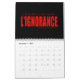 January: "Lumière! lumière! tout vient de la lumière et tout y retourne." (5.I.v) February: "Rien n'est plus dangereux que le travail discontinué; c'est une habitude qui s'en va." (4.II.i) March: "Liberté: la souveraineté de moi sur moi; Egalité: la concession que chacun fait à tous; Fraternité: la protection de tous sur chacun." (Adapted from 5.I.v) April: "L'égalité ce n'est pas une société de grands brins d'herbe et de petits chênes." (Adapted from 5.I.v) May: "Espérance: le mot que le doigt de Dieu écrit pourtant sur le front de tout homme." (Adapted from 1.II.vii) June: "Il y a des gens qui observent les règles de l'honneur comme on observe les étoiles, de très loin." (5.I.xxi) July: "L'infaillibilité n'est pas infaillible." (5.IV.i) August: "Frères, qui meurt ici meurt dans le rayonnement de l'avenir, et nous entrons une tombe toute pénétrée d'aurore." (5.I.v) September: "Dompter la matière, c'est le premier pas; réaliser l'idéal, c'est le second." (5.I.v) October: "Faire le poème de la conscience humaine, ne fût-ce qu'à propos d'un seul homme, ne fût-ce qu'à propos du plus infime des hommes, ce serait fondre toutes les épopées dans une épopée supérieure et définitive." (1.VII.iii) November: "L'homme a un tyran, l'ignorance." (1.I.x) December: "Il n'y a guère autre chose que cela dans le monde: s'aimer." (5.IX.v)