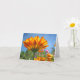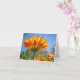 This note card has an unusual view: looking up at the sky through a golden calendula flower.