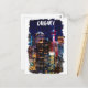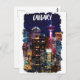 Colorful postcard showing the skyline by night of the canadian city Calgary in Alberta with its unique architecture and buildings. Makes a great souvenir and travel gift for every tourist.