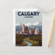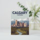 Celebrate the gateway to the Rockies with this beautiful, vintage-style postcard! It features the Calgary, Canada skyline nestled between a lush green forest, a winding river, and the majestic snow-capped mountains of the Canadian Rockies in the distance. The warm, inviting colors and classic illustration style capture the unique blend of urban life and natural splendor in Alberta. A perfect piece for nature lovers, city dwellers, or fans of classic Western Canadian travel art.