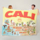 Bright and charming cartoon blanket offers a whimsical view of Southern California - cute characters enjoy the warm California sun showcasing Los Angeles, San Diego, Riverside, Palm Springs, Anaheim and Long Beach, Anza Borrego and Joshua Tree parks as well as the border cities of Tijuana, Tecate and Mexicali.