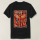 My 11 yo wore adult XL (5’7” 165#). The 8yo is small framed. She wore adult small and tied it in the back. Grandma wore adult large with long sleeve shirt underneath. Tall girl adult medium. Dark haired male adult large. Good quality dark Heather gray, Gildan brand shirt. -it was next up from basic choice and cost about $20 per shirt. Not too thick or thin. Washed and dried well, no major shrinkage. Not see-through. Can wear a bra under it fine. Screen print is just as shown and well done, front and back.