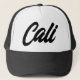 Cali trucker hat - California script typography. Custom black and white baseball cap for casual wear, sports, golf and more. California Republic state pride. Stylish hand lettering design for men and women. Available in other cool colors too.