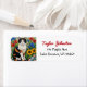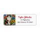 A cute calico cat standing in red poppies, blue iris and yellow sunflowers done n a pretty folk art style. Personalized return address labels.