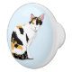 Customize this knob by changing the background to your choice of color or image. Beautiful particolored orange, black and white cats are known as calicos. This original artwork of a tricolored kitty was inspired by the artist's own calico cats.