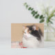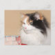 Long haired calico kitty cat has birthday cake icing or frosting all over her face from taking bites cat lovers birthday postcard