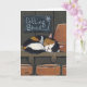 Cute cat themed greeting card featuring a painting by Lisa Marie Robinson. A calico cat sleeps on a shelf next to pots in the potting shed. Copyright © Lisa Marie Robinson All rights reserved. It is illegal to use or duplicate this, or any of our images, without written permission.