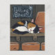 Cute cat themed postcard featuring a painting by Lisa Marie Robinson. A calico cat sleeps on a shelf next to pots in the potting shed. Copyright © Lisa Marie Robinson. All Rights Reserved. It is illegal to use or duplicate this, or any of our images, without written permission.