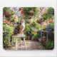 Calico Cat on a Stool in a Greenhouse Mouse Pad