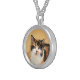 Calico Cat Painting - Cute Original Cat Art Silver Plated Necklace
