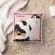 Orange, black and white cats are known as Calicos. This original artwork of a Calico was inspired by the artist's own cats. You can customize this design by changing the background colors, the borders and text.