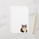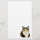 Original fine art design of a calico kitty with her feet tucked under by illustrator Carolyn McFann of Two Purring Cats Studio on customizable stationery for cat lovers.