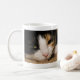 Coffee mug featuring Macy, a young, full blooded Calico cat has climbed under a rug thinking she is hiding, to play. Did you know that only the female Calico's have all 3 colors (brown, black and White)? Male Calico's only have black and white. Looking for more prints or products? Feel free to visit my store: http://www.zazzle.com/timelessmomentsphtgy This photo was taken by Jennifer White with Timeless Moments Photography. All images are copyrighted © Timeless Moments Photography/Jennifer White. All rights reserved.