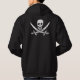 Black tee with white skull and crossed swords to match John "Calico Jack" Rackham's Jolly Roger pirate flag. Calico Jack is most remembered for two things: (1) the design of his Jolly Roger flag which contributed to the popularization of the design and its association with piracy in popular culture; and (2) employing two of the most notorious female pirates of the age as part of his crew – Mary Read and Anne Bonny (the latter of whom he had whisked away from her husband).