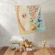 A cute cartoon baby blanket of Southern California – showcasing Los Angeles, Anaheim, Long Beach, San Diego and many other cities plus most beaches. This whimsical scene is full of fun – a surfer hangs ten while a mermaid lounges on a rock, a killer whale leaps out of the water and a bull smashes into a bull fighter, all beneath the warm California sun shining high above it all.