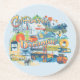 I'm not sure how much moisture these will soak up, haven't had a chance to try them out, but they look good and I like the cork backing. The printing is fine ~ and really looks cool with an artisan's hand made "Hurricane Martini" glass sitting on top of my painting (on the coaster) in my studio.