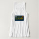Travel back in time to the year 1969 with this retro-inspired California license plate design. Bold embossed-look yellow text with the custom tag number "CA DREAMN" pops on the blue contrast. The vintage style lettering, tag stickers and panhead screws bring a nostalgic vibe. This scoop neck tank top is the perfect casual statement piece for beach days, weekend adventures, and everyday coastal life.