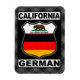 California German design, in the style of a cool American road route sign. The text California German is along the top and bottom, with the flag of the State of California and the flag of Germany inside the route sign. Great for Californians of German descent, and for ex-pats in the Republic of California!